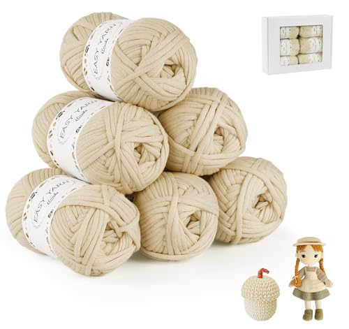 ilauke 6 stycken Chunky virkgarn för nybörjare, 6 x 50 g tjockt garn bomull för virkning och stickning, beige