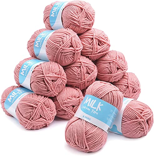 Baby virkgarn mjölk 12 x 50 g/kula, mjukt och hållbart 100 % akrylgarn för nybörjare och barn, noppfri babygarn för stickning och virkning, babygarn för hatt skor strumpor halsduk (rosa lös)