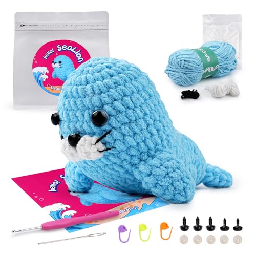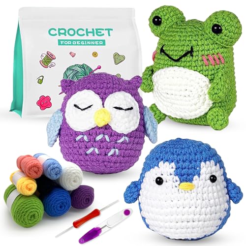 YUMILI Nybörjare virkad startkit, virkningsset för nybörjare, djur virkpaket komplett amigurumi startset med videohandledning gör-det-själv virkning kit för barn vuxna, gåva för hantverksälskare