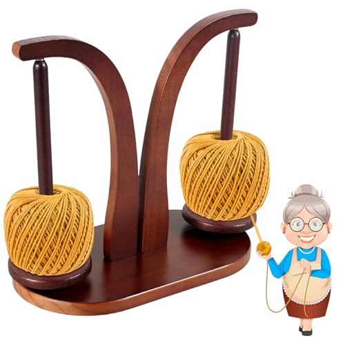 Garnhållare för virkning trä garn spinner för 2 garnbollar magnetisk roterande stickning garn ullhållare virkad garn bollhållare dispenser dubbel spindel garnhållare för älskare nybörjare (retro)