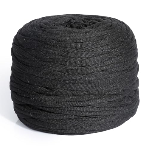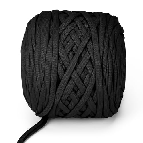 Cozary 100 m virkgarn, bomullsgarn för virkning, mjukt, hållbart virkgarn för nybörjare, 2,2 cm brett, perfekt för virkning och stickning, perfekt för väskor, filtar och heminredning (svart)