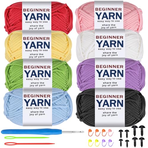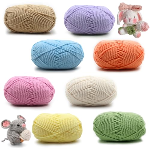 WSICSE 8 x 50 g nybörjare, virkgarn, bomullsgarn för virkning lätt-att se stygn tjockt mjukt garn för nybörjare virkningssats, gåvor