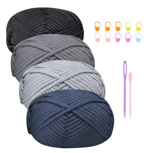 Tjockt garn för virkat bomullsgarn för virkad tjock ull 4 x 50 g virkat garn för nybörjare virkning ull stickgarn med virkade tillbehör grå svart garn