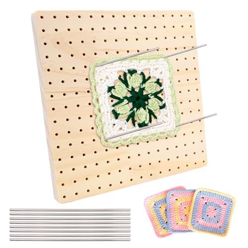 Mritrit 20 cm Granny Square blockeringsplatta för virkning och stift, 20 cm träblockbrädor med 8 rostfria stålpinnar för nybörjare stickprojekt