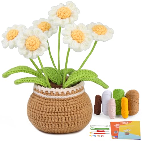 kgxulr virkningskit för nybörjare, Little Daisy virkningskit, nybörjare, virkning, startkit för hela nybörjare och vuxna, virkningsstickningssats med steg-för-steg-videotutorials (liten tusensköna)
