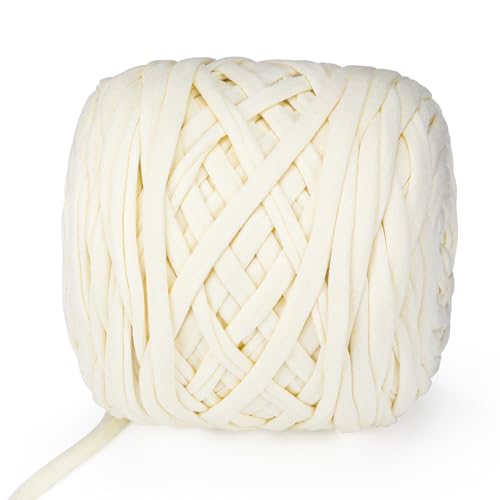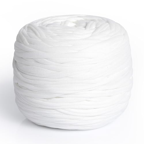 VynyQoo Polyester T-shirtgarn för Virkning, Garnnystan 105 m, 2 cm Brett, Tjockt Garn för Nybörjare för Virkade Väskor, Korgar, DIY-Projekt och Heminredning(vit)