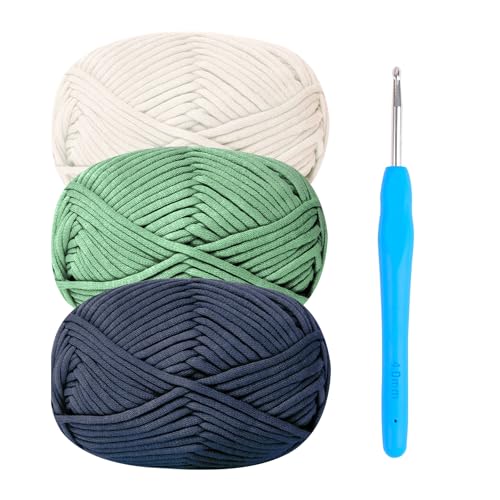 Renyiz Tjockt garn för virkning, bomullsgarn tjock ull för virkning 3 x 50 g virkat garn för nybörjare Amigurumi-garn med 4 mm virkad krok, lättvirkat startkit blått grönt garn