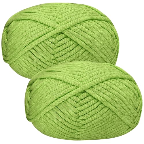 Tjockt garn för virkning, t-shirt-garn för virkning, virkning, garn, tjock ull för virkning 2 x 100 g tjockt garn med 6 mm virknål, virkgarn för nybörjare, elastisk tygduk, stickning, gult garn