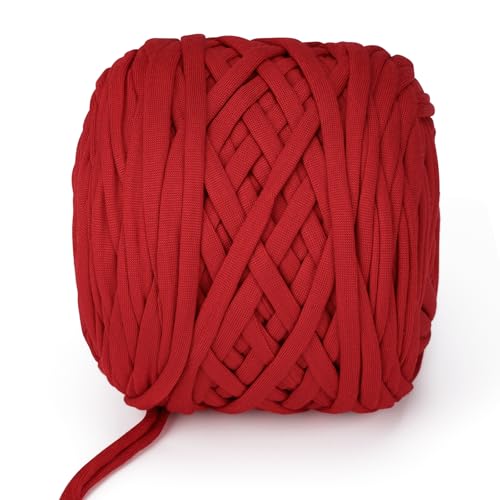 VynyQoo Polyester T-shirtgarn för Virkning, Garnnystan 105 m, 2 cm Brett, Tjockt Garn för Nybörjare för Virkade Väskor, Korgar, DIY-Projekt och Heminredning(röd)