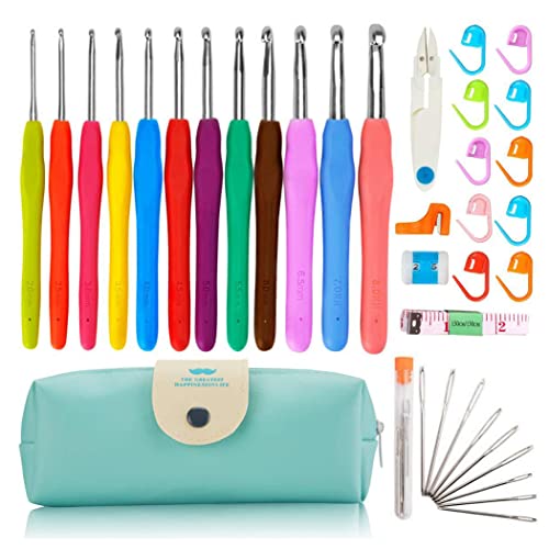 LUTAKU Set med virkade krokar, 12 st virkning i full storlek, ergonomiska mjukt grepp gummihandtag, virkade kit för nybörjare vuxna, virkade krokar med fodral (grön)