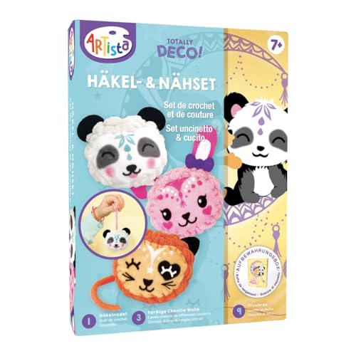 Artista 9301959 virk- och syset djur, kreativt set i praktisk förvaringslåda, pysselset för barn från 7 år, nybörjare, virkning, sömnad inlärning