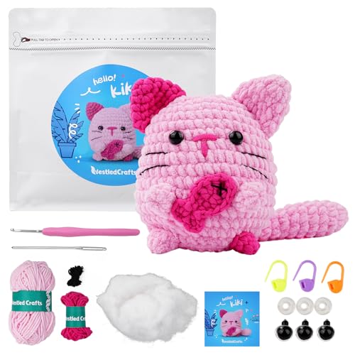YUMILI Nybörjarset med virknål nybörjare, virkningsset för nybörjare, amigurumi-kit för djur, komplett nybörjarset med videohandledning, virkning kit