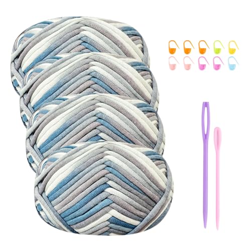 Tjockt garn för virkat bomullsgarn för virkad tjock ull 4 x 50 g virkat garn för nybörjare virkning ull stickgarn med virkade tillbehör, grått garn