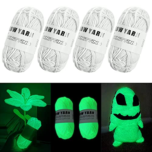 AUAUY Lysande garn, 4 st polyestergarn som lyser i mörkret för virkning, 50 meter stickgarn gör-det-själv hantverk gårdar för konst, matttröja hatt halsdukshandskar, hantverk och sömnad nybörjare