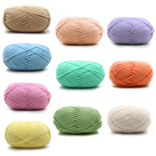 10 stycken virkgarn, 10 färger mjölkbomullsgarn, 50 g handstickningsgarn bomullsgarn, för virkning och hantverk, för nybörjare, lättskött