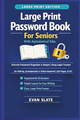 Large Print Password Book For Seniors With Alphabetical Tabs: Internet Password Organizer & Keeper | Easy Login Tracker for Elderly, Grandparents & Vision Impaired | 229 Pages, 6"x9"