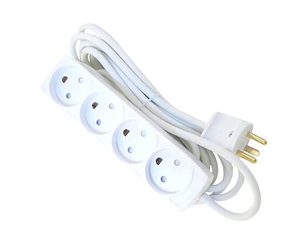 Uttag Med 4 Runda Uttag, Med Jord. 1,5 M Sladd, Med Stickpropp. Vit Färg. 10A 250V
