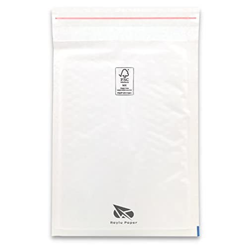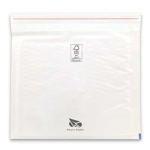 Raylu Paper - Set med 10 vadderade kuvert med självhäftande stängning, kraft-bubbelkuvert, för att skicka dokument, brev, paket, vit färg (10 enheter, 220 x 330 mm)