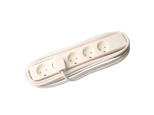 Uttag Med 4 Runda Uttag, Med Jord. 5M Sladd, Med Stickpropp. Vit Färg. 10A 250V