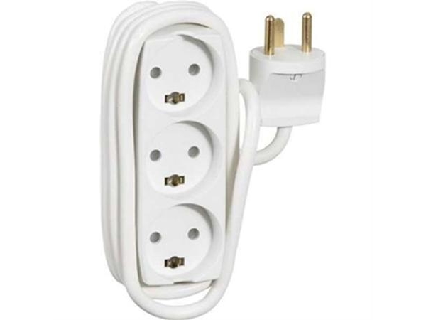 Uttag Med 3 Runda Uttag, Med Jord. 5M Sladd, Med Stickpropp. Vit Färg. 10A 250V