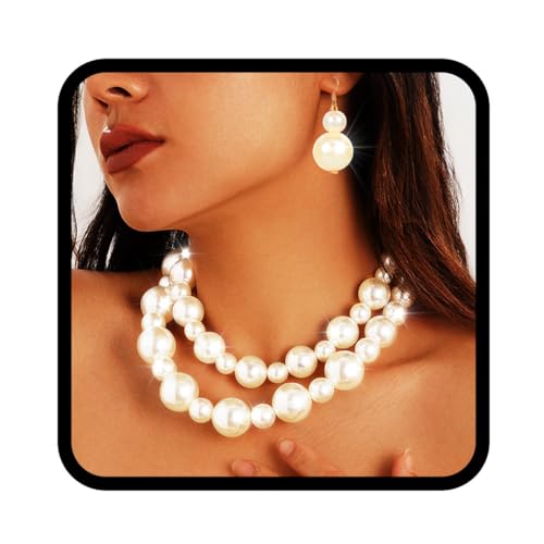 Handcessa brud bröllop pärla smycken set vit pärlor halsband örhängen set brud kostym halsband set för kvinnor, En storlek, Konstgjord pärla, Ingen ädelsten
