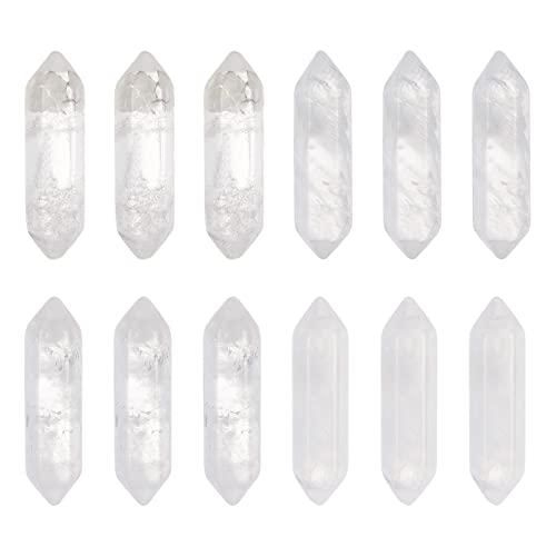 OLYCRAFT Naturlig kvartskristall, vit kvarts, spetsar, hexagonal kristall, dubbla spetsar, stavar, inga hål, kvartshängen, ädelsten, dekor för eget hantverk, halsband, smyckestillverkning, 12 st
