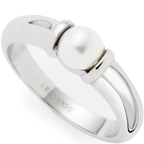 Leonardo Jewels ring Almina, bandring av rostfritt stål, storlek 18 (56), silver, vit pärlcabochon, damsmyckesgåva, 023539, Rostfritt stål, Ingen ädelsten