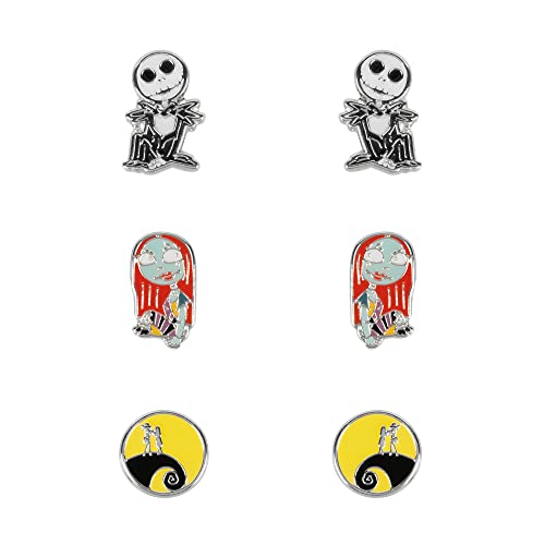 Disney The Nightmare Before Christmas svart, vit, röd och gul trio örhänge set SF00470SL, En storlek, Mässing, Ingen ädelsten