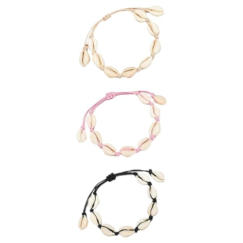 MUNSKT 3 st justerbara skalarmband vristlänk ankel semester armband naturlig cowrie-skal för kvinnor flickor svart vit rosa, En storlek, Plast, Ingen ädelsten
