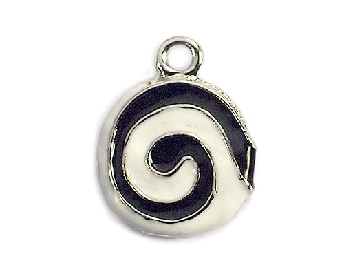INNSPIRO Metal hänge NICE CHARMS svart och vit spiral med diamant karbinhake. 13mm. 25u., 11x15mm., Metall, Ingen ädelsten