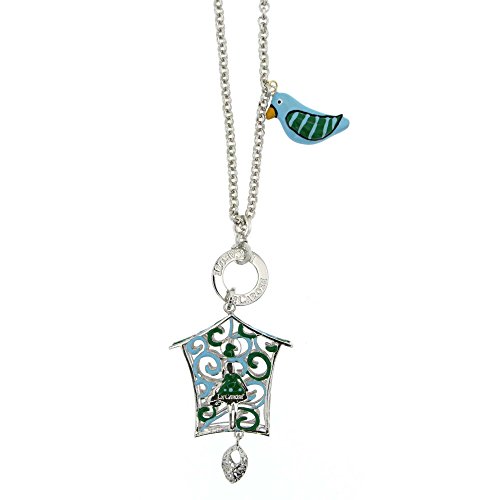Le Carose Damhalsband Pyro Piro Collection. Smycken är gjorda av mässing, med vit elektroplätering och emaljhänge med fågelhänge. Storlek: halsband 100 cm, hänge 4 cm, medium, Brons, Ingen ädelsten