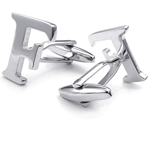 HONEY BEAR Män initial alfabet bokstav silver vit stål bröllop formella affärer manschettknappar, En storlek, rostfritt stål, Ingen ädelsten