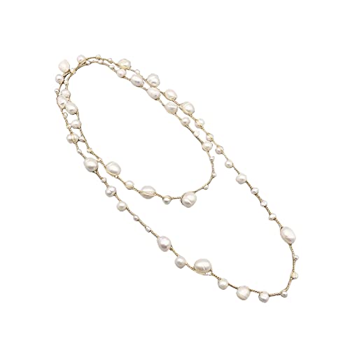 Fläta virkat sötvatten vit pärla halsband för kvinnor vardagliga handgjorda smycken dam barock långa, Pärla, Ingen ädelsten