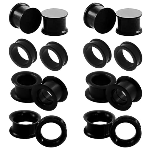 Heuvipens 16 st vit svart flexibel tjock silikon öronpropp varierar typ kött tunnel mätare för öron expanderare lobb piercing 6 g – 1 tum, 11/16" (18mm), Metall, Ingen ädelsten