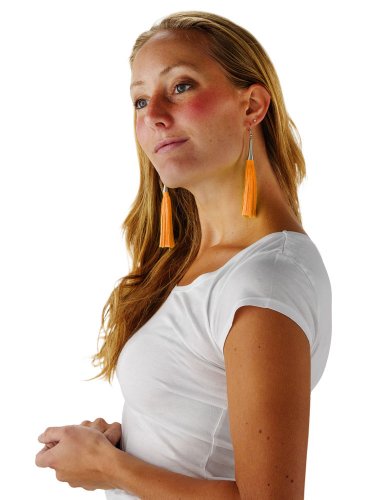 Orange-vita fransörhängen, polyester, ingen ädelsten