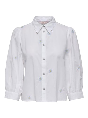 ONLY Damskjorta, box-fit, skjortkrage, ärmmuddar med knapp, voluminös ärmsnitt, skjorta, Vit ädelsten
