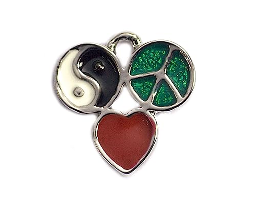 INNSPIRO Metal hänge NICE CHARMS ying/yang, fred och hjärta vit, svart, röd och grön 14x14mm. 25u., 21x14mm., Metall, Ingen ädelsten