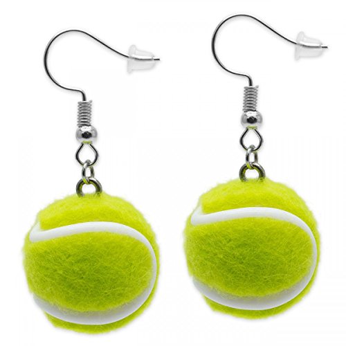 Soul-Cats 1 par roliga tennisboll örhängen verklighetstroget återskapas i gul-vit, högkvalitativ plast, filtbelagd, Ingen ädelsten