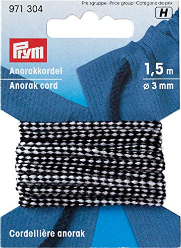 Prym Anorak-sladd 3 mm, polyester, svart/vit, 9,3 x 6,7 x 1 cm