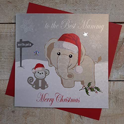 Vita bomullskort till den bästa mamman merry, handgjorda julkort. (Elefant och apa, kod xx14-103)
