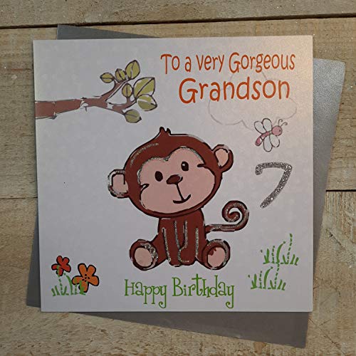 vita bomullskort 'To A Very Gorgeous Grandson 7 Glada, handgjorda 7:e födelsedagskort (frusig apa)