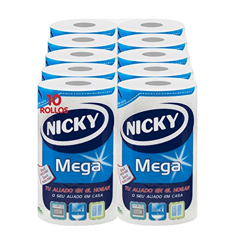 Nicky Mega hushållspapper | 10 rullar | 2-lagersark, 125 ark per rulle | Kompakt rulle apa som 4 | 100% Fsc-certifierat papper, vit, U, 62 ml