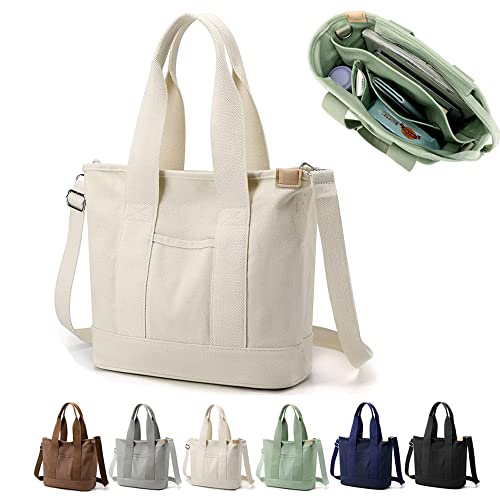 YILCER Bärkasse av kanvas med flera fickor och blixtlås, japansk handgjord handväska med fack, axelremsväska med flera funktioner, för kvinnor, tonårstjejer skola, arbete och resor, Large