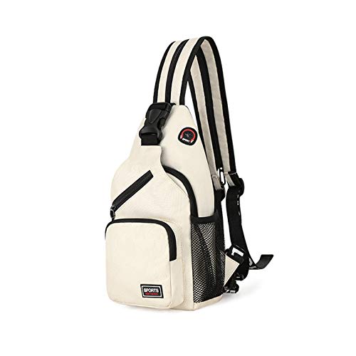 FANDARE Liten axelremsväska med hål för kvinnor, axelväska, axelväska, flickor, axelväska, multifunktionell bröstväska, axelväska, sportväska, gym, väska, Vit, L, Modern