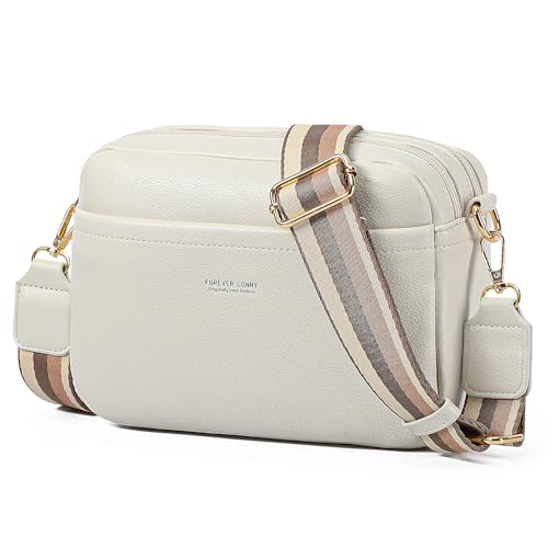 AIFILLE Axelväska för kvinnor, PU-läder, axelremsväska för kvinnor, liten telefonväska för flickor med bred avtagbar axelrem och 2 fack med dragkedja, Vitt