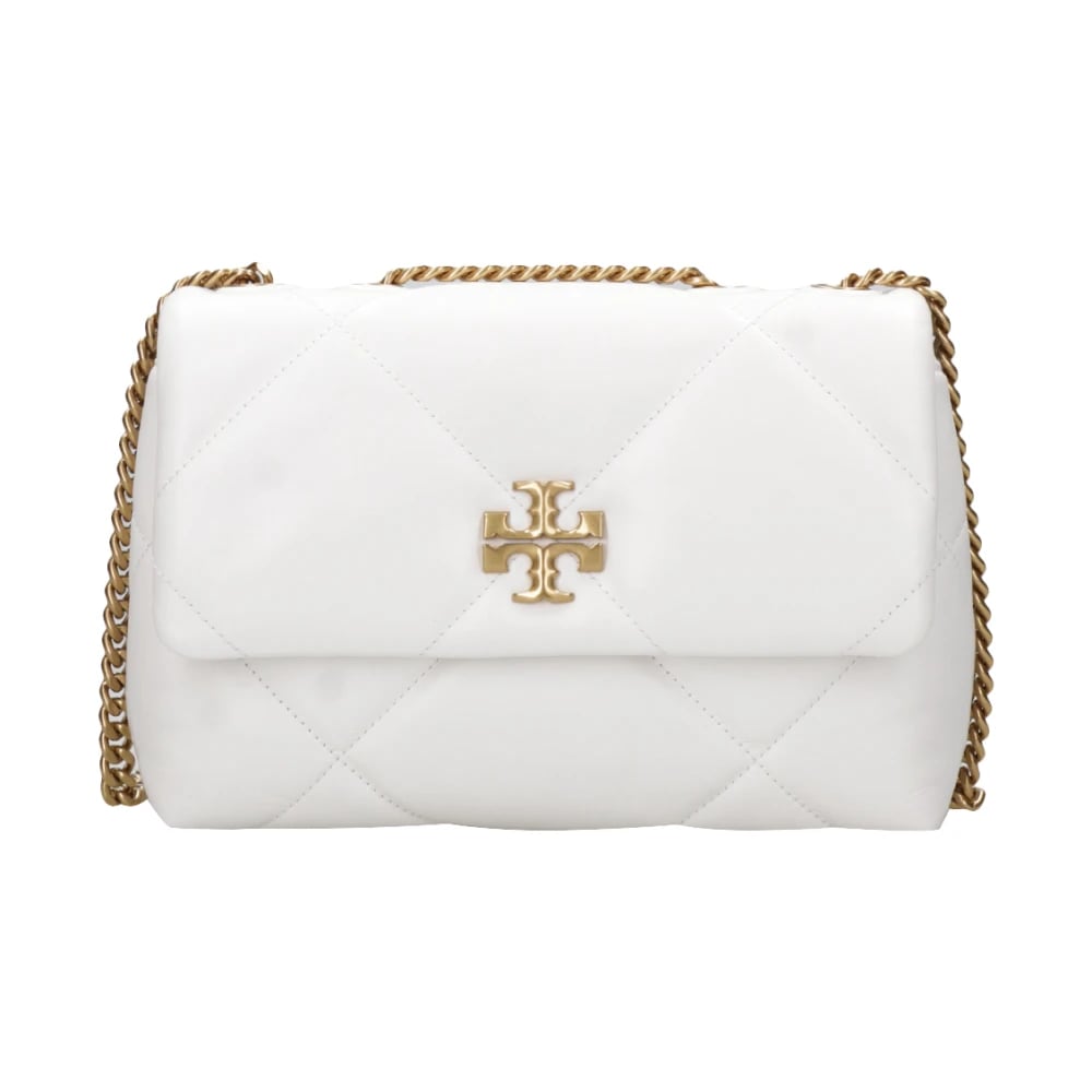 Tory Burch, Väskor , Dam, ONE Size, Läder, Vit Nappa Axelremsväska med Flap