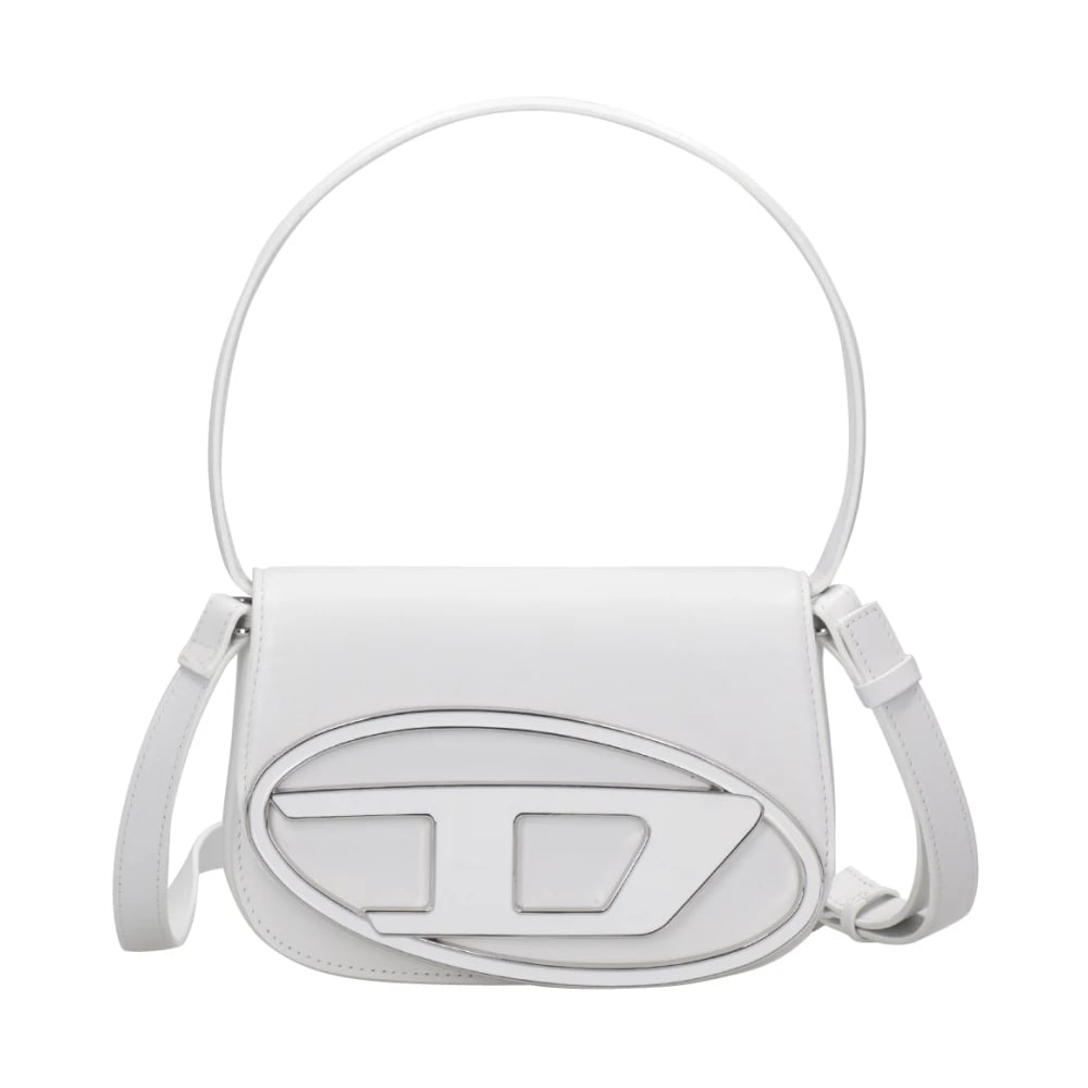 Diesel, Väskor , Dam, ONE Size, Läder, Vit axelremsväska i läder med oval platta