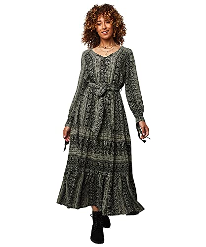 Timezone Dam tryckt boho-klänning avslappnad klänning, Gröna vita filolblad, XL