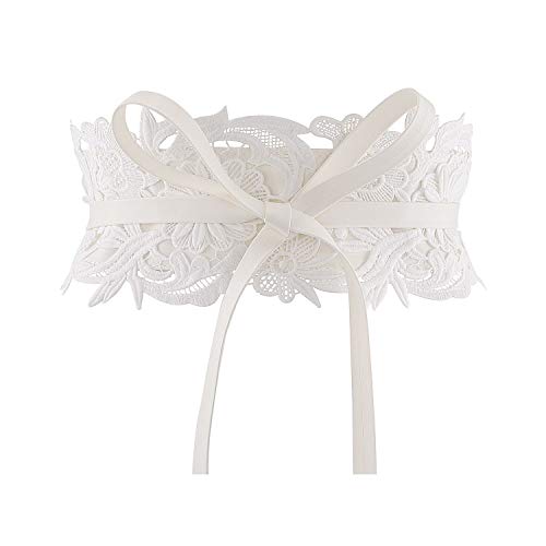 Ayliss Women's Lace Waist Belt Obi Bowknot Cinch Wide Belt Bow Tie Wrap Boho Corset Dress Waist Band Pu Leather (White)