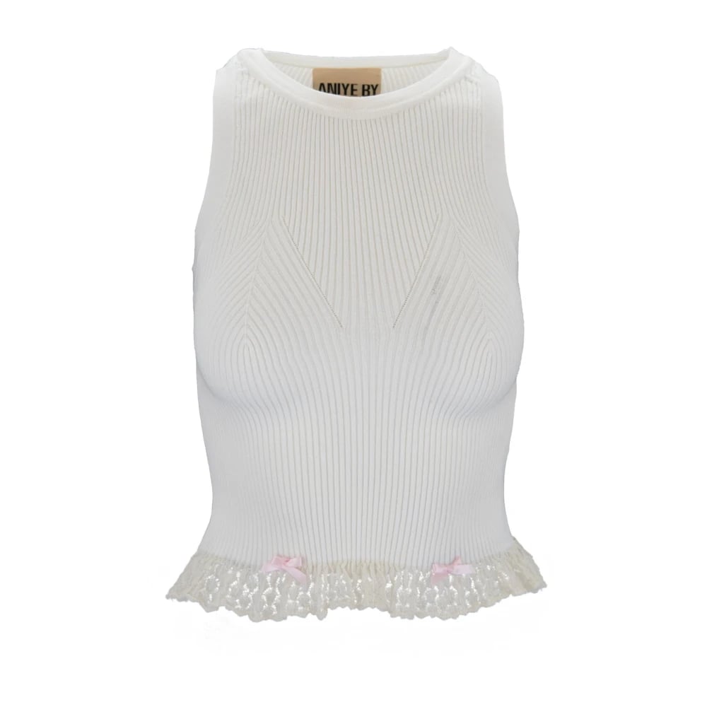 Aniye By, Toppar , Dam, M, Bomull, Dam Slip-On Klänning med Broderad Spetsdetalj